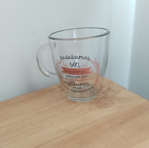 Diseño con calco vitrificable, horneado a 550°C,