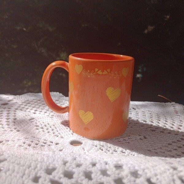 TAZA RECTA NARANJA CORAZONES DORADOS