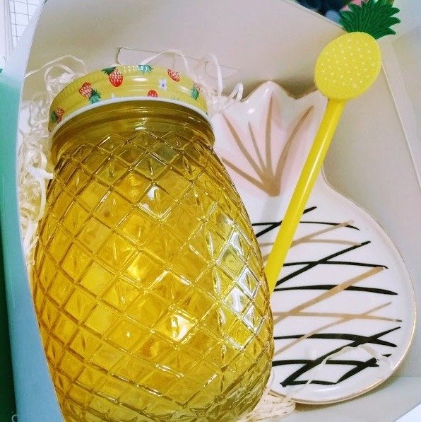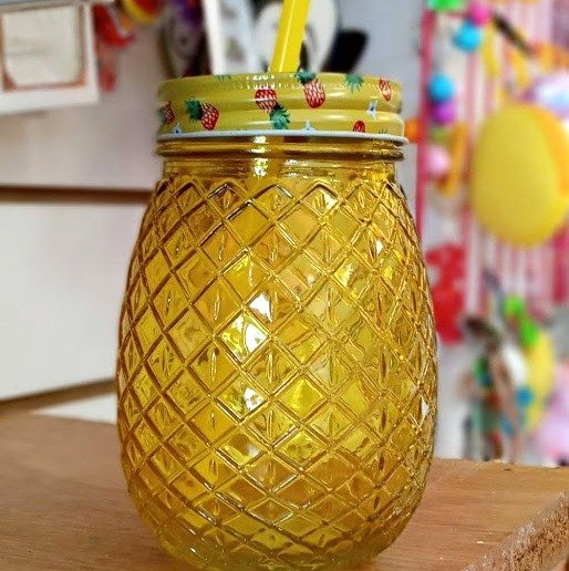 VASO DE VIDRIO ANANÁ CON TAPA Y SORBETE
